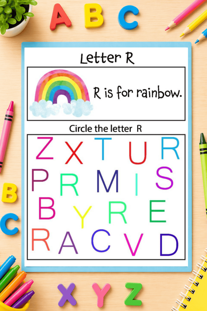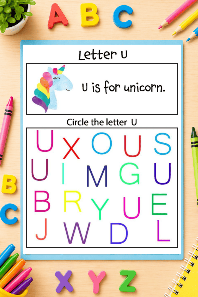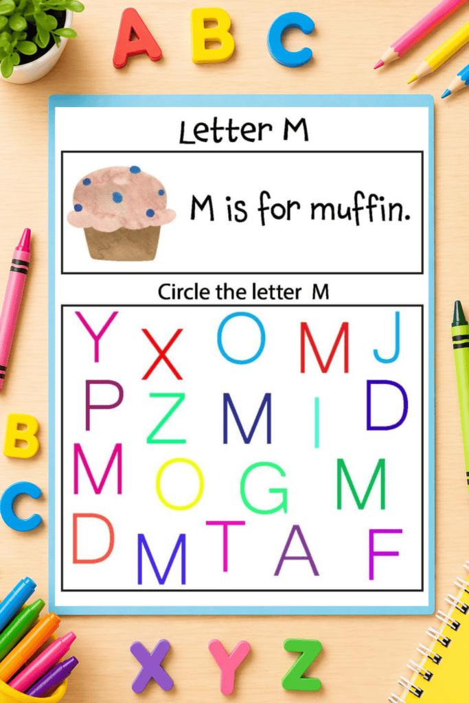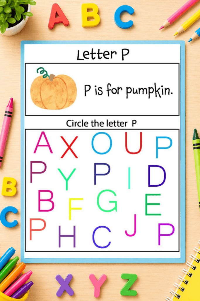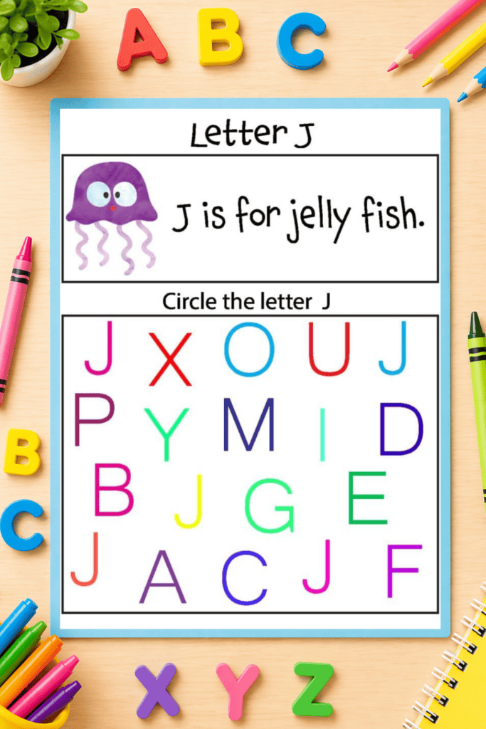 Each worksheet focuses on a different letter of the alphabet and gives children the opportunity to recognize and identify letters by circling the correct ones. These alphabet letter recognition worksheets are perfect for preschool, pre-k, kindergarten, and homeschool learners who are just beginning their literacy journey.