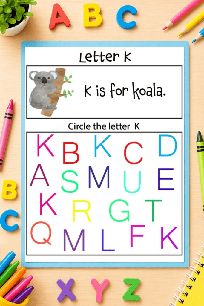 ✔️ Fine Motor Skills – Circling letters strengthens hand control
