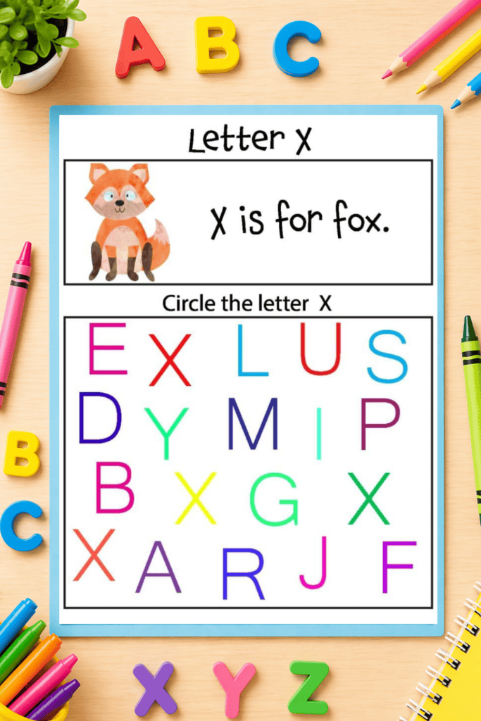 - A focus letter (like A is for apple or F is for fish)